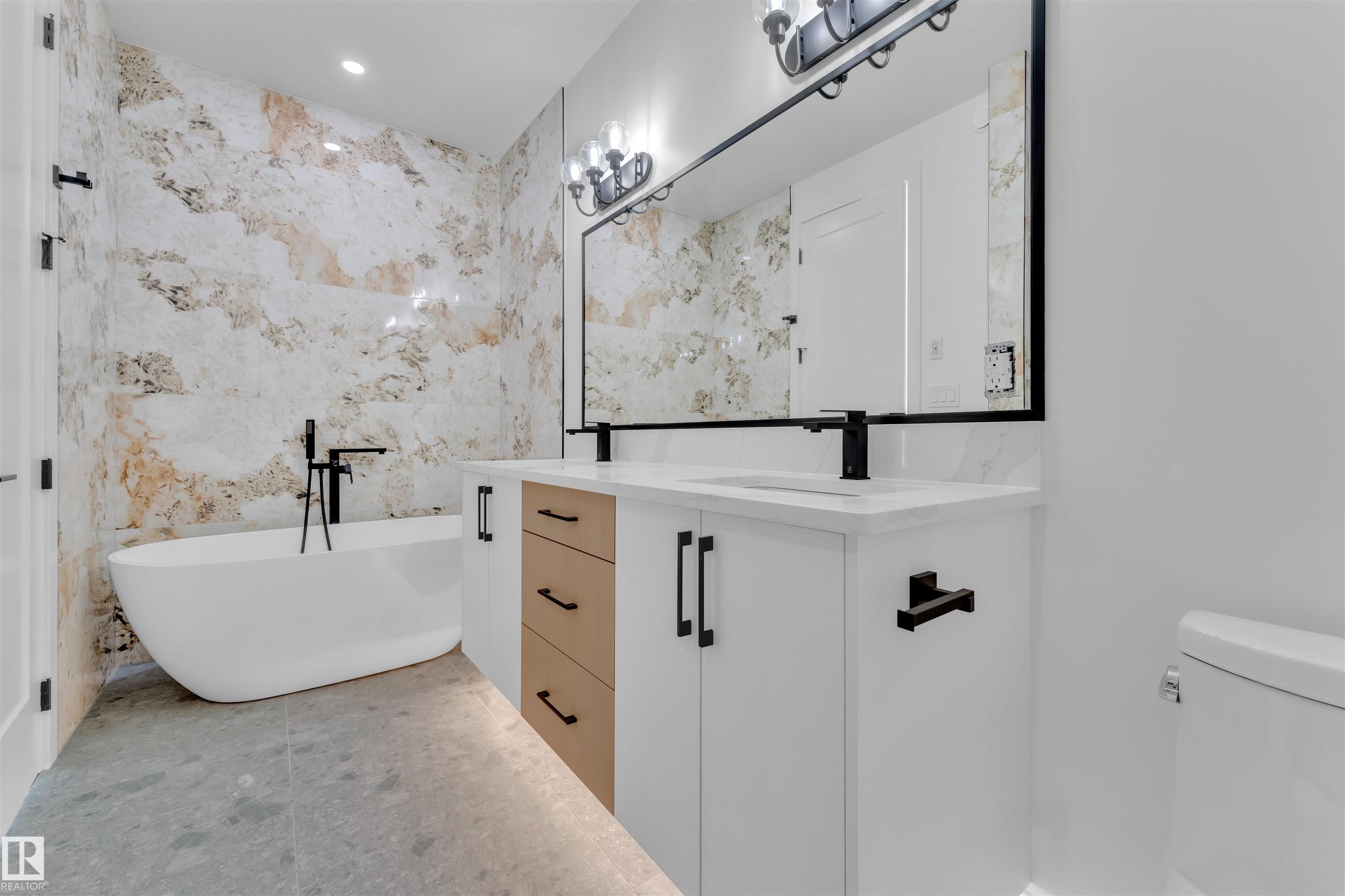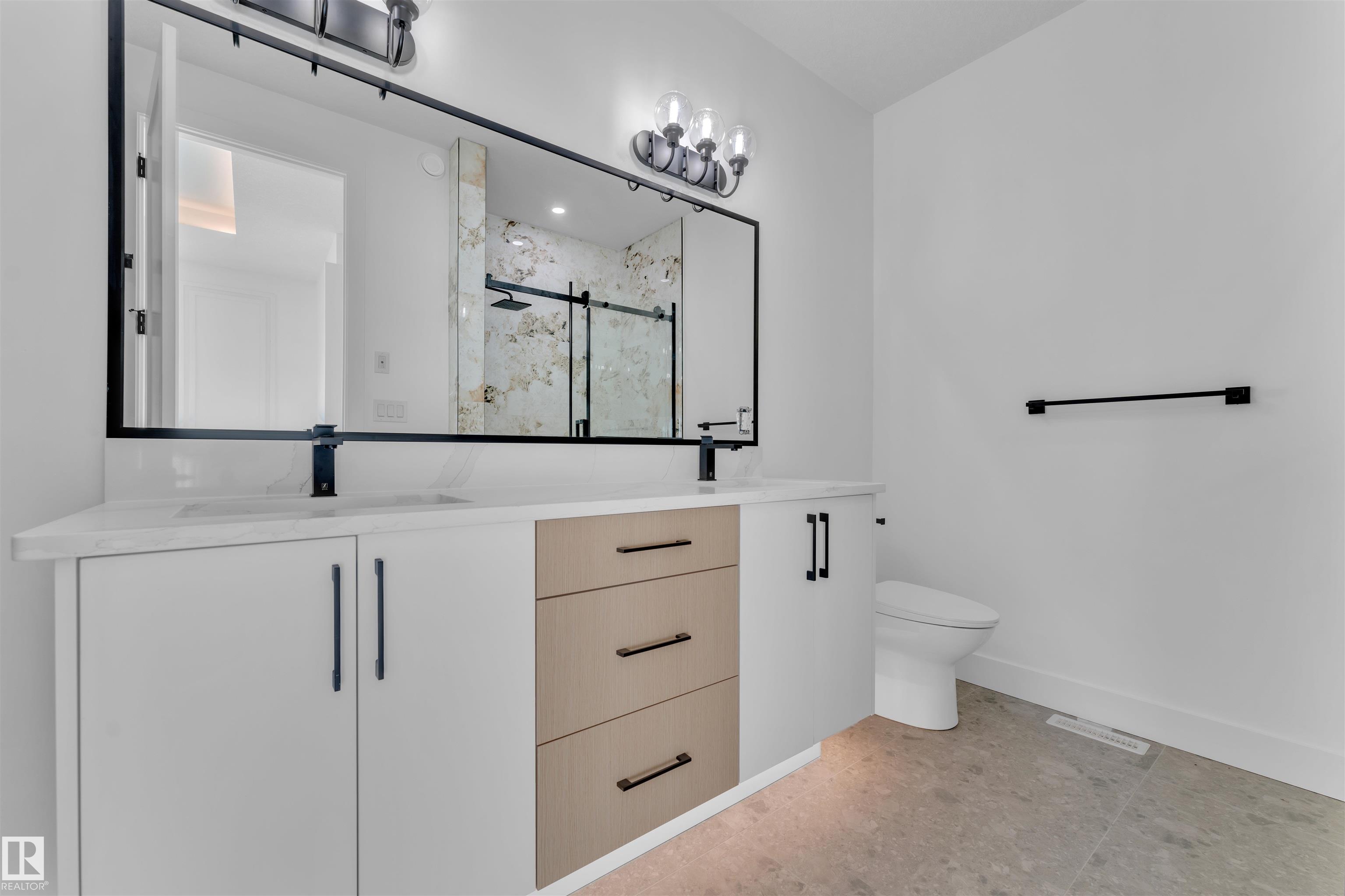 This custom-built EAST FACING home boasts a 2 BEDROOM LEGAL BASEMENT SUITE, providing potential RENTAL INCOME to help with mortgage payments. Enjoy serene views of green space and walking trails from the backyard, with NE NEIGHBOURS behind. The main floor features a spacious BEDROOM and 3PC BATHROOM , modern open-concept kitchen with wet bar in dinning area & SPICE KITCHEN, Abundance of Windows in main living area. The second floor offers two bedrooms sharing a common 3 PC bathroom, while the MASTER BEDROOM...
